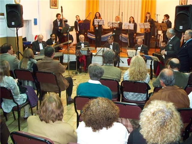 Ante la presencia de concejales, funcionarios, familiares de los integrantes de la formación, centros de jubilados y vecinos que gustan de la música ciudadana, el acto dio inicio a las 19:00 horas con la entonación del Himno Nacional Argentino desarrollado por la Escuela-Orquesta Municipal de Cuerdas, la que además interpretó otras tres canciones de su repertorio.